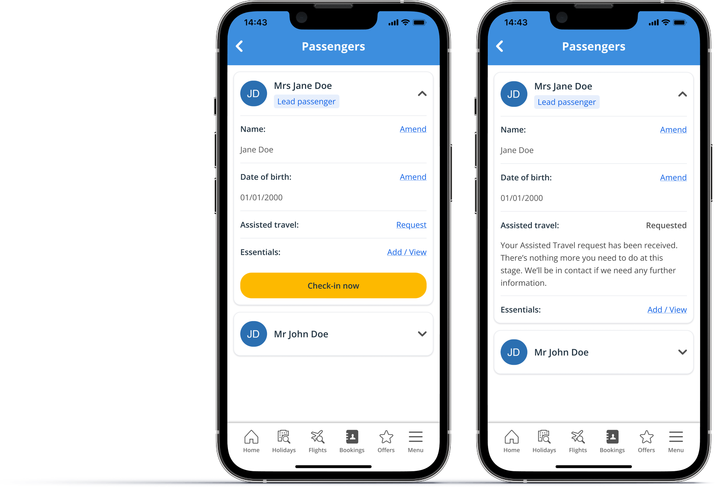 The previous essentials page showed a basic summary of available ancillaries, but lacked detail. The app API only provided totals, e.g. total bags without showing which passengers they applied to or which leg of the journey, leading to confusion and a poor user experience.