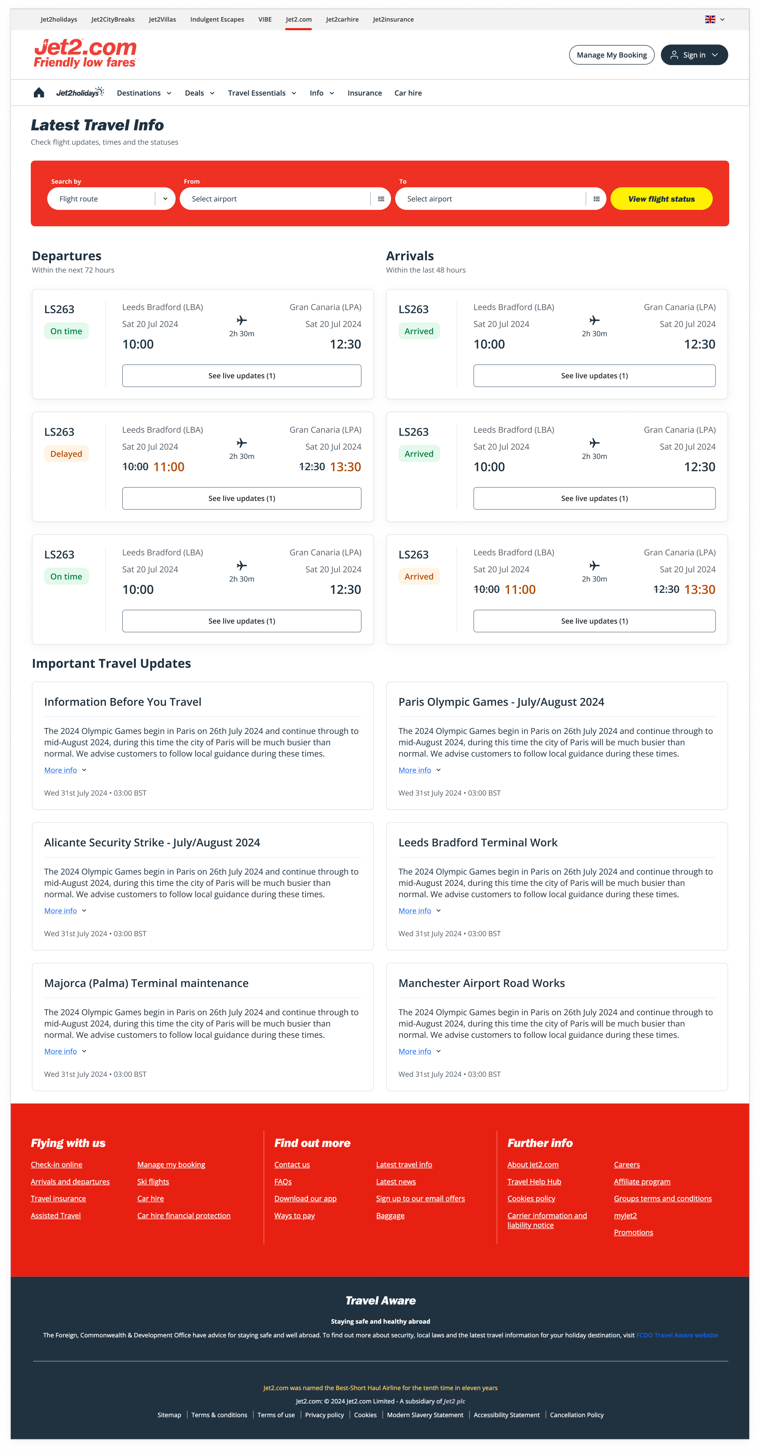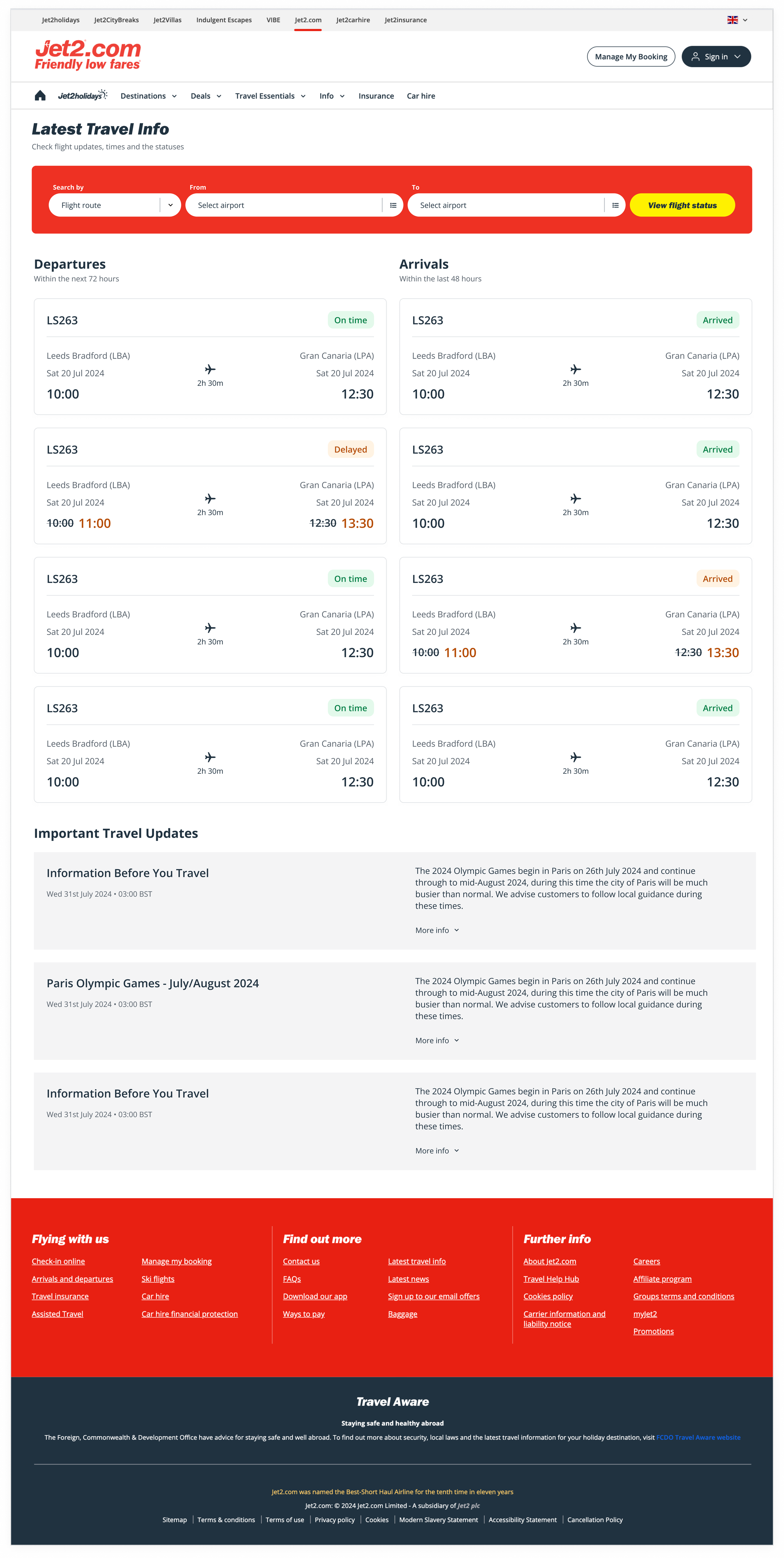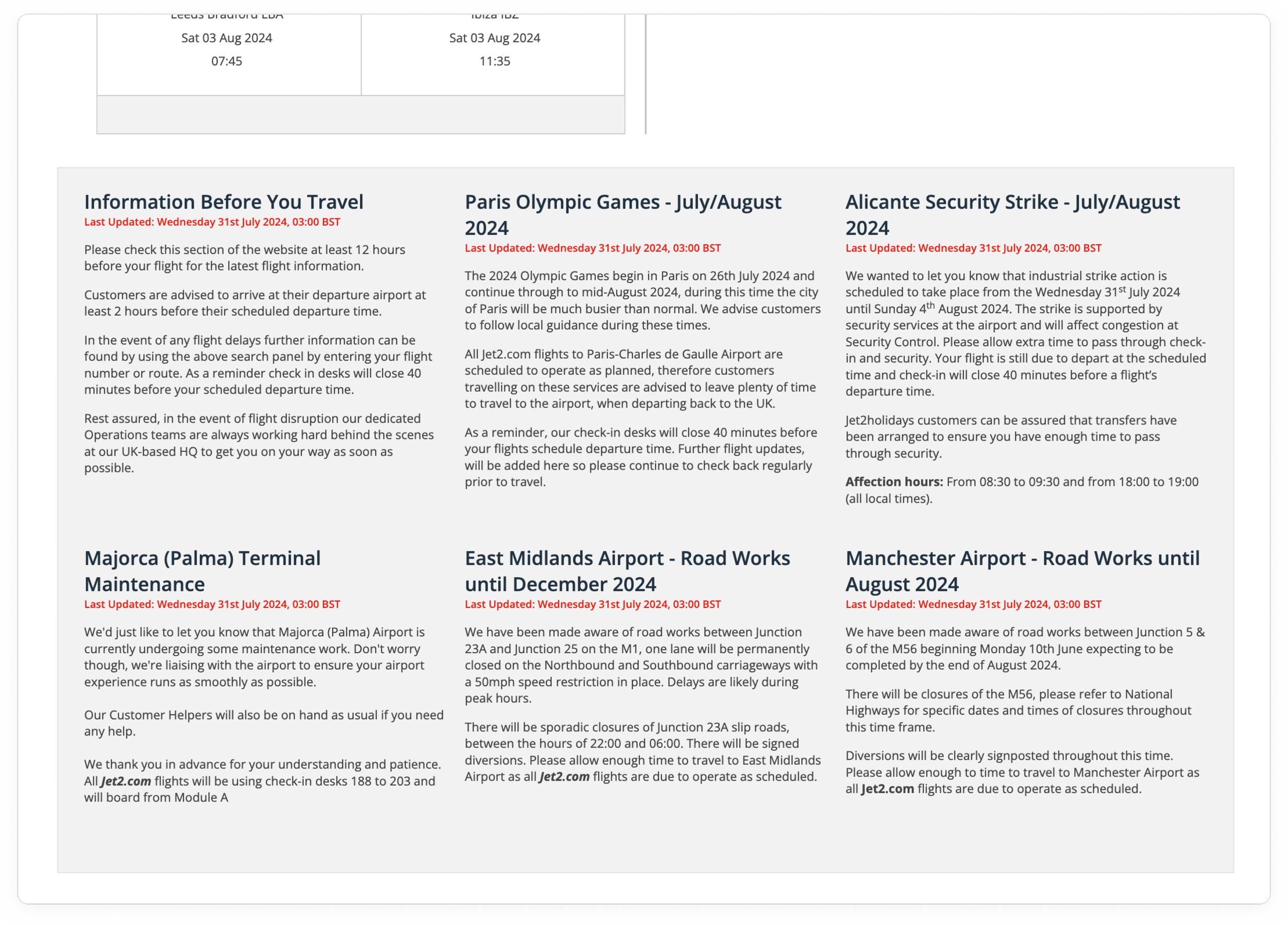 After re-entering booking details, the page currently shows information for all flights in that criteria, not just that customers specific flight – for example, if you were to enter Manchester to Tenerife all flights within the next 72hours would show making it harder for the user to find their flight.